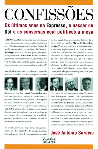 «Da guerra Balsemão/Saraiva ao que dizem os políticos na intimidade de um almoço, o ex-director do mais influente semanário das últimas décadas revela alguns segredos quase... de Estado. Neste livro o autor, mais do que confessar, revela os seus últimos dias no semanário e que foi director durante vinte e três anos e de onde saiu para fundar o SOL, o mais recente semanário da imprensa. Como foi negociada a sua saída do EXPRESSO? Que situações levaram o director do semanário mais antigo do país a bater com a porta? Como nasceu o projecto SOL? Antes ou depois da decisão de sair do EXPRESSO? De que falam, quando se encontram à mesa, os políticos e o director mais influente do país? A resposta está nestas confissões, que nos revelam ainda histórias escondidas dos políticos mais influentes por quem com eles privou na intimidade.»